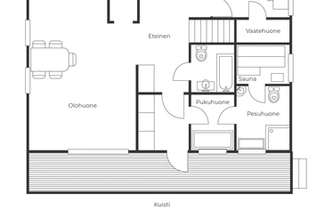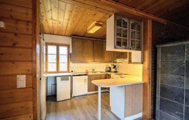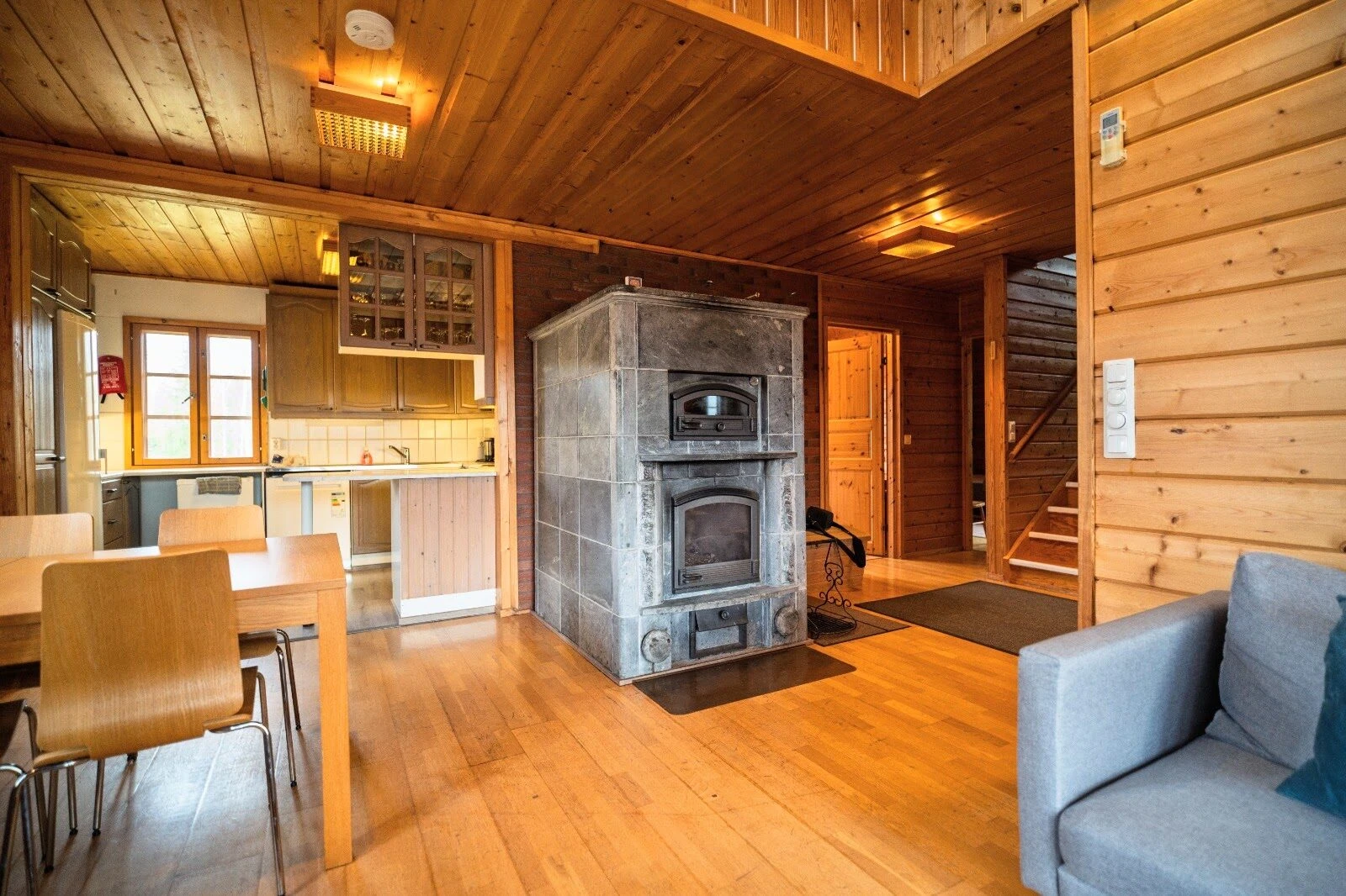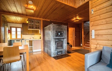 Käytössäsi on hyvin varusteltu keittiö. Oleskelun mukavuutta lisää vuolukivitakka ja ilmalämpöpumppu. Pyykinpesukone ja kuivauskaappi ovat käytössäsi varustehuoltoon.