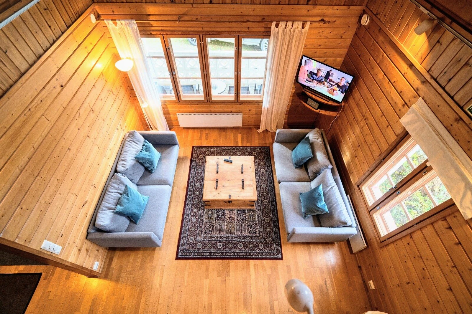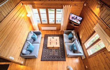 Huuhkajassa on neljä erillistä makuuhuonetta, makuualkovi lisävuoteineen sekä runsaasti yhteistä tilaa yhdessäoloon. Kolme WC:tä, kaksi suihkua ja sähkösauna takaavat mukavuuden myös isommalle seurueelle.