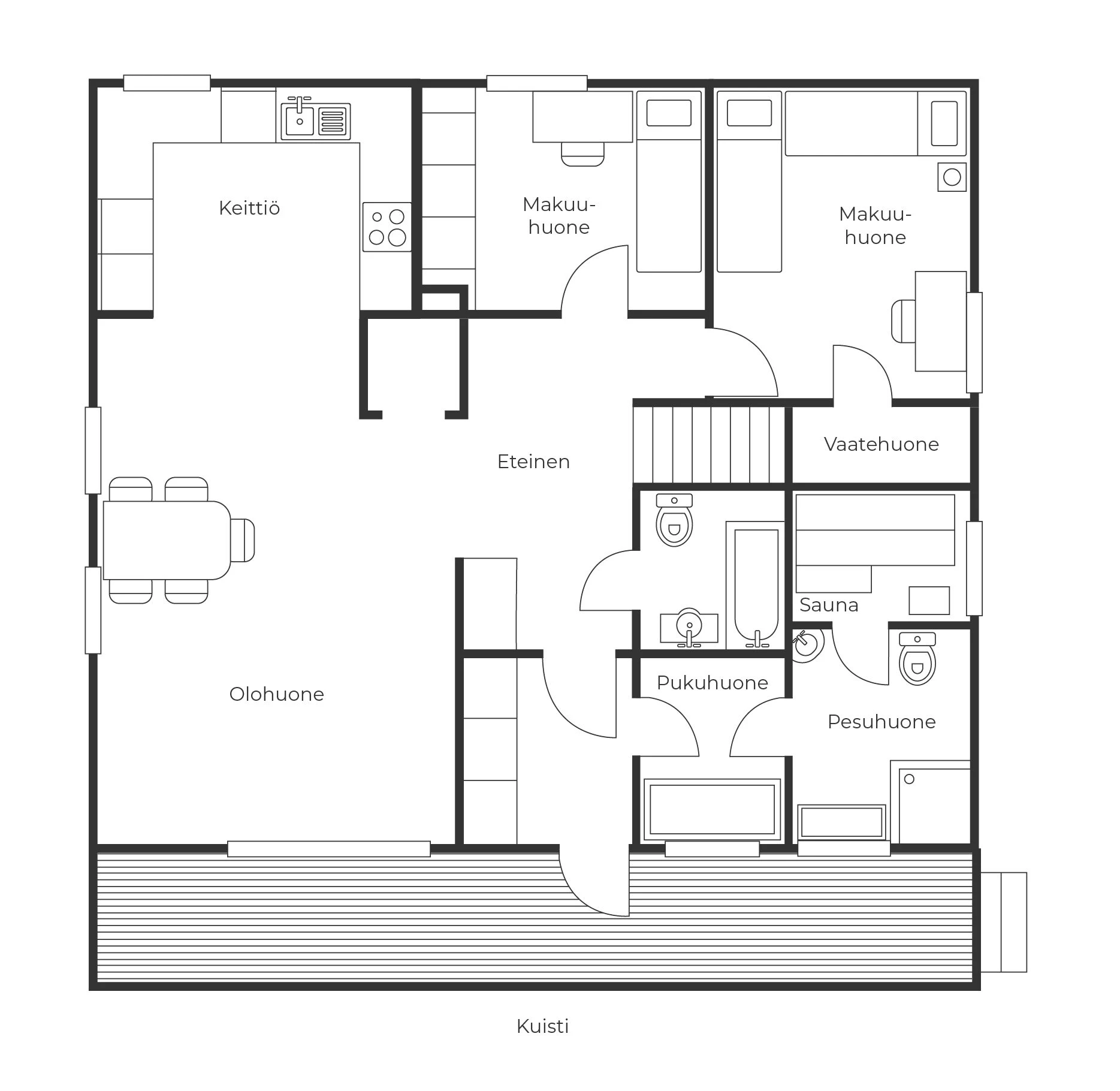 Huuhkajan oma terassi ja piha-alue tarjoavat täydellisen paikan aamukahville, iltapäivän grillailuun tai tähtien katseluun.